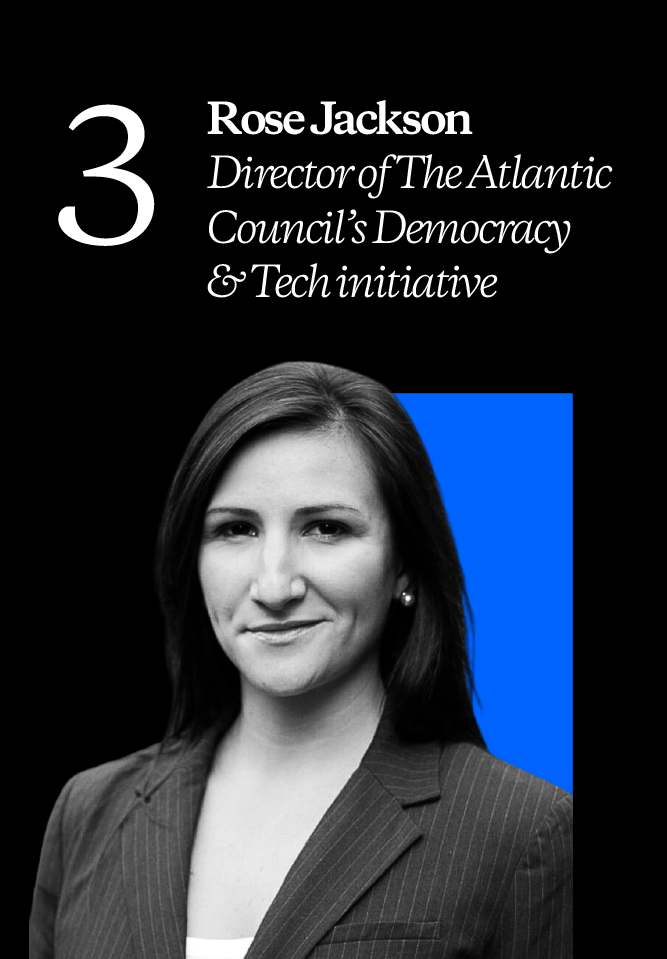 On this episode Rose Jackson explains how, in her work as Director of the Digital Forensic Research Lab’s Democracy + Tech Initiative at The Atlantic Council, she and others in civil society are changing the tide—using tech to support healthy societies and robust democracies around the world.
