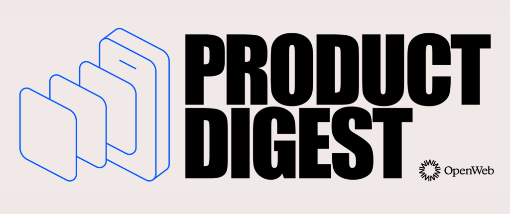 Sign up for OpenWeb’s monthly newsletter. Hello there! Product Digest is OpenWeb’s monthly newsletter, covering the latest in product news, marketing, and upcoming roadmap. If you’d like to subscribe, fill out your information in the form.Stay ahead in the industry and subscribe today. Subscribe